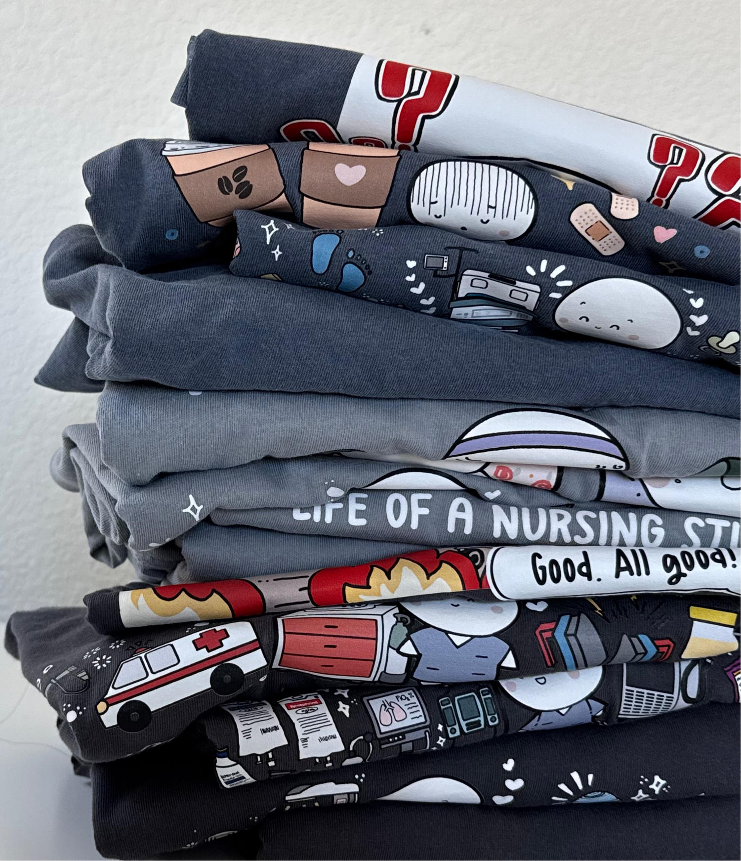 Our shirts capture the journey of nurses — from the challenges of nursing school to the proud moments of practicing in the field.