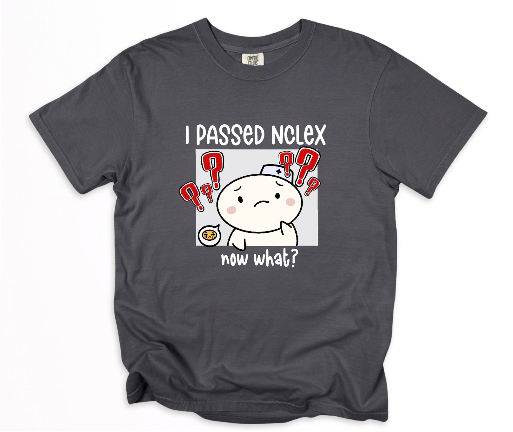 Celebrate the sweet, confusing victory of becoming a licensed nurse with this funny nursing student shirt — featuring a hand-drawn, doodle-style design of a nursing student who just passed the NCLEX… and has absolutely no idea what to do next. Whether you're anxiously waiting for a job offer, refreshing your email every 5 minutes, or simply enjoying the strange calm after the storm, this "I Passed NCLEX… Now What?" tee hilariously captures the awkward transition between graduation and your first real nursing job. Printed and heat pressed on the ultra-soft and breathable Comfort Colors 1717 shirt, this tee is made with 100% ring-spun cotton for that broken-in, lived-in feel nurses crave after long clinical hours. The relaxed fit, and garment-dyed fabric. and doodle art design make this shirt both stylish and ridiculously comfortable. It’s the perfect gift for nursing graduates, new RNs, or anyone currently floating in that post-NCLEX limbo. Because even if your next step is unknown, one thing’s for sure — this funny nursing shirt brings a lot of laughs and a whole lot of comfort.