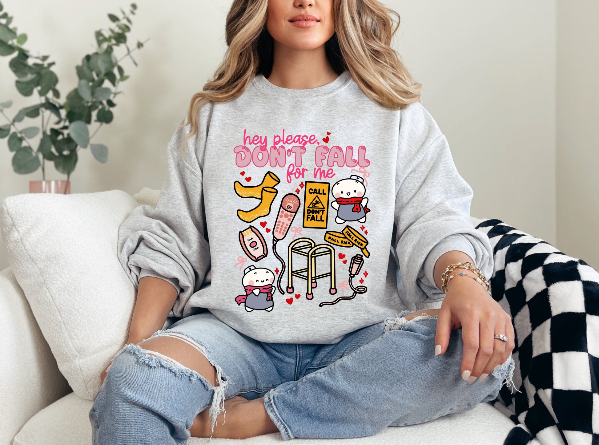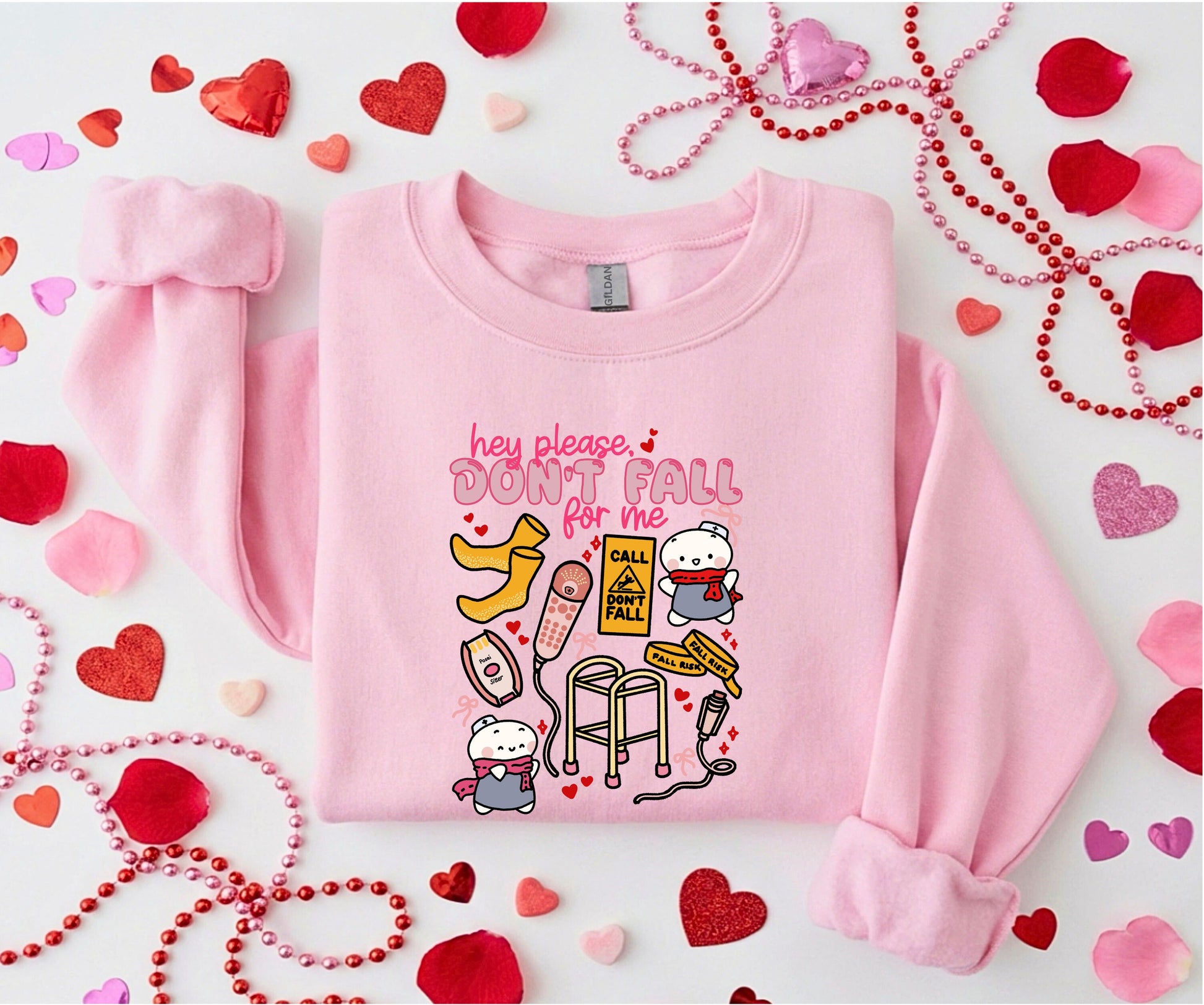 Warning: extreme charm ahead. This Valentine’s Day sweatshirt is for nurses who do love with humor and hospital logic. Inspired by the classic fall risk bands and signs, this design is a playful nod to everyday nursing life — because let’s be honest, you know they’re going to fall for you anyway 😉